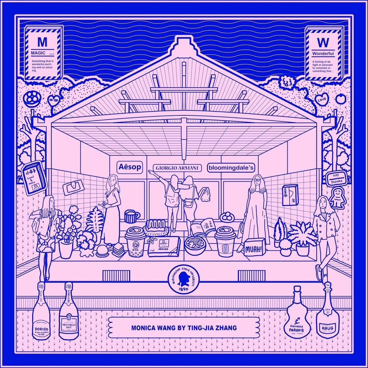 In the later stages of the pop-up, other shops like "Hill Dessert Studio" and "Bird Fish Dessert Studio" also ordered paintings. The work expanded from translating individual stories to translating brands. Because of this, the JiaJia Universe Pop-up Shop project became the starting point and foundation for other projects, continuing to refine my creative path.