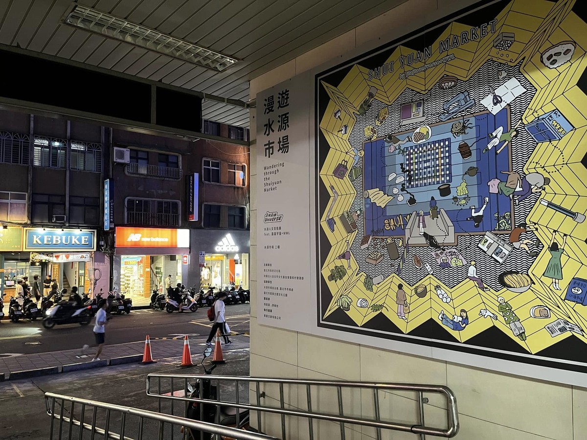 We are bringing four new works: "Roosevelt Road Shui Yuan Roaming," "Tingzhou Road Shui Yuan Roaming," "Shui Yuan Cargo Matrix," and "Shui Yuan Food Vortex." We deconstruct *The Heart of Shui Yuan*, the public artwork on the market's exterior wall created by Yaacov Agam. By incorporating folded plate elements, barcode elements, cargo, and food, we invite you to re-understand the Shui Yuan Market you know in a brand new way!