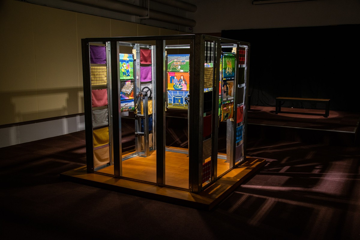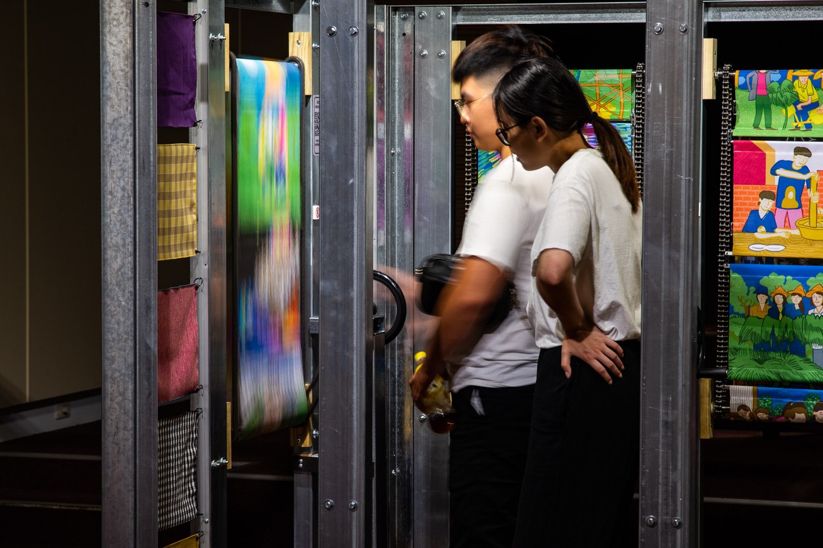 The artwork is a 180x180x180cm cube made of four interactive metal chain scroll paintings. Viewers can enter the cube and scroll through the paintings to explore the cultural activities promoted by the Taipei Hakka Cultural Center. This responds to the "urban void" caused by the renovation of the Center in 2019. At Huashan 1914 Creative Park, we continued the cultural activities that the Center creates.