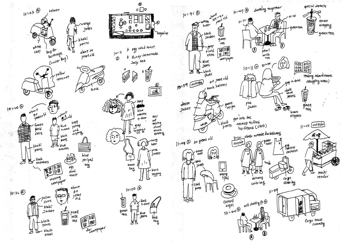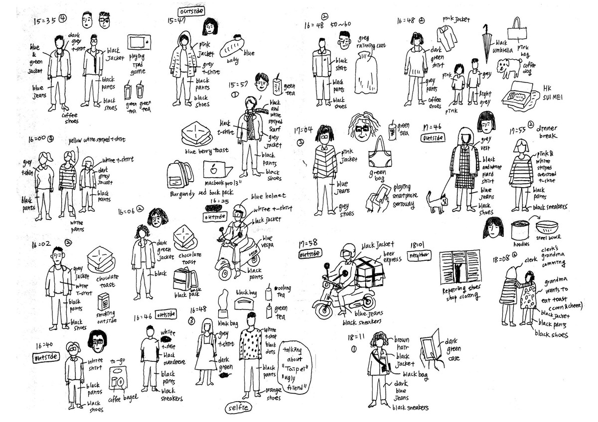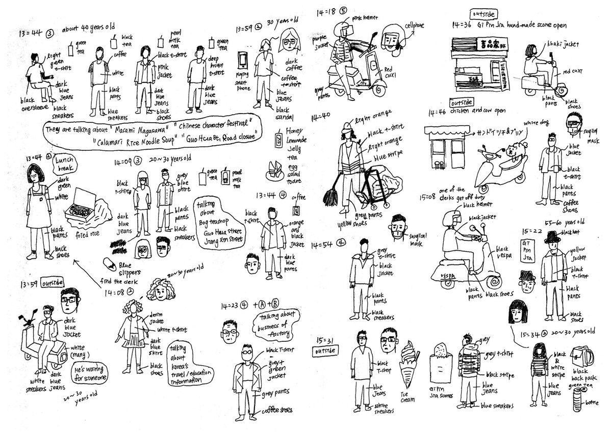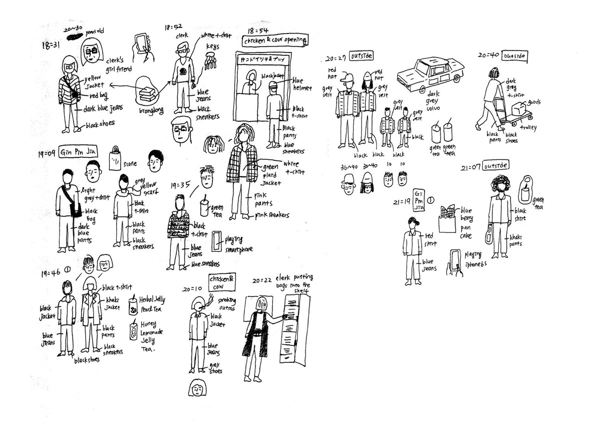 "Any-object-whatever" explores three methods for observing the urban environment. The first is staying statically in one place to observe and record the changes in surrounding materials. The second is dynamically interacting with the city, using sketching as a social tool to engage with the daily lives of residents. The third is drawing city maps to create observations and classifications of "Any-object-whatever," focusing on byproducts and unfamiliar objects.