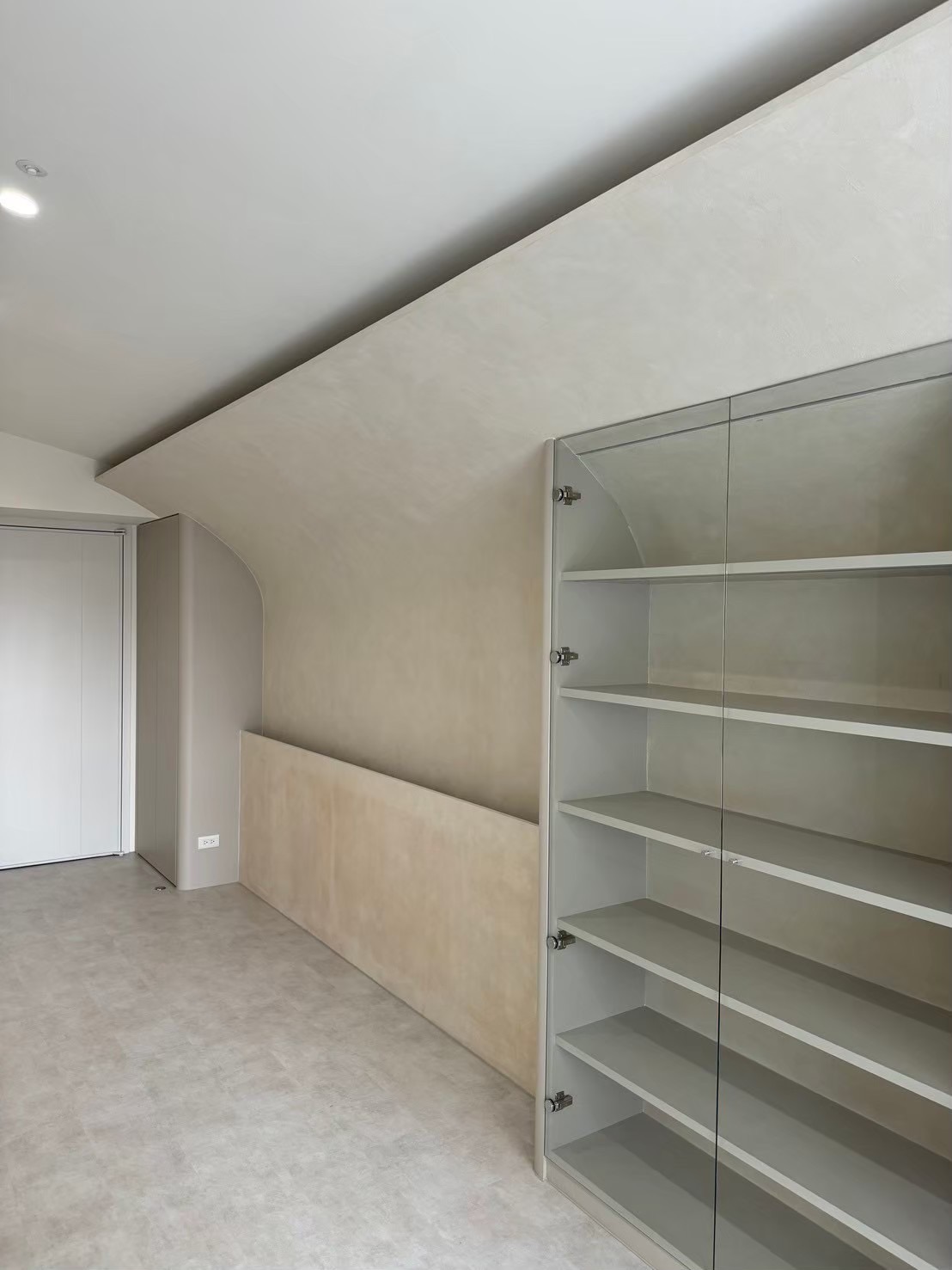 For storage and display, we designed clean and simple glass cabinets. These meet the needs for display through transparency and lightness while keeping the space pure. Considering the owner’s background as an engineer, they are very sensitive to order and logic. Therefore, we used many soft-edge designs in the details to reduce visual tension and the pressure from sharp angles. This ensures the overall space stays warm and balanced within a logical framework.