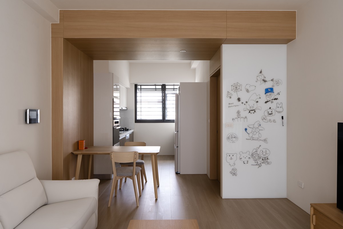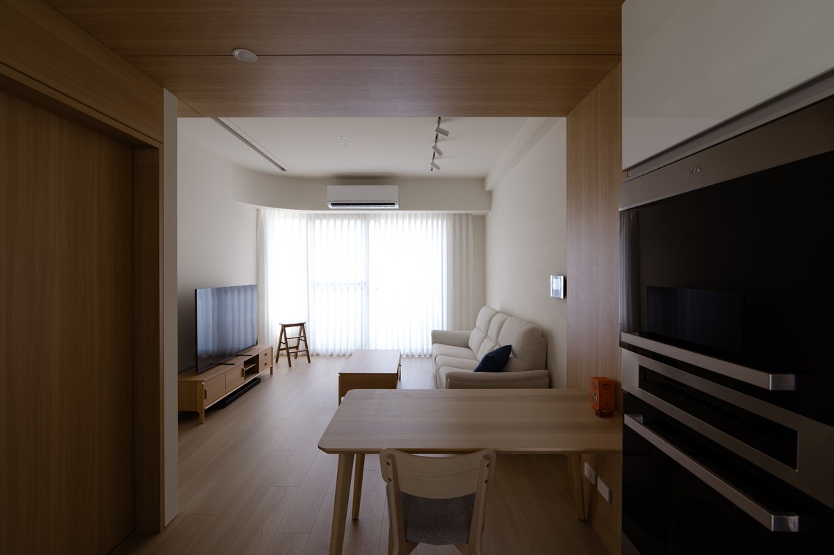 In addition, the public space uses light oak door-shaped structures to hide the heavy beams. By combining the doors and structures, the beams become part of the design instead of a visual burden. The overall design meets the owner’s hope for a warm, simple, and peaceful life. By using a minimalist style, we combine furniture and custom decoration to create a natural and stable living scene.