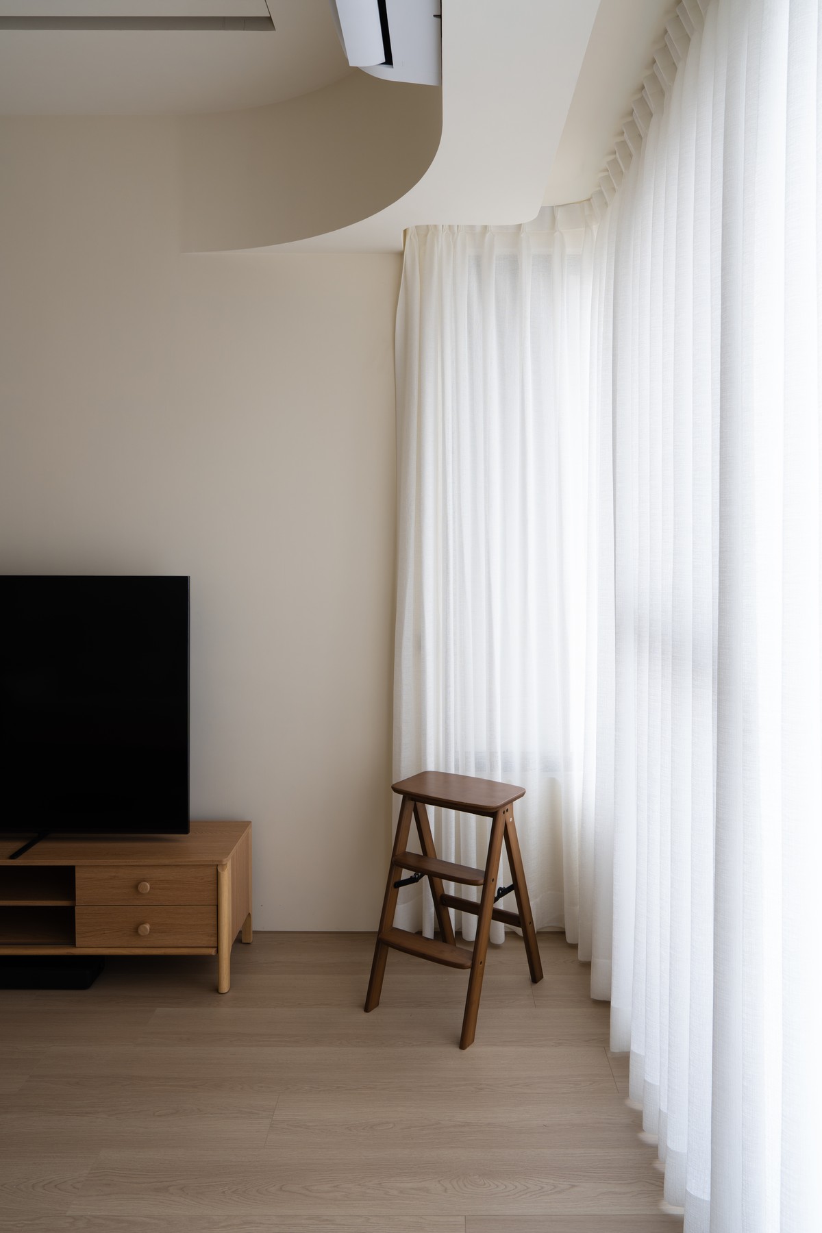 This residence uses white, gray, and light oak textures as the main tones. By matching low-saturation colors with natural wood textures, we create a clean, stable, and warm space. The color strategy controls contrast and material types, so the visual layers stay quiet and not boring.